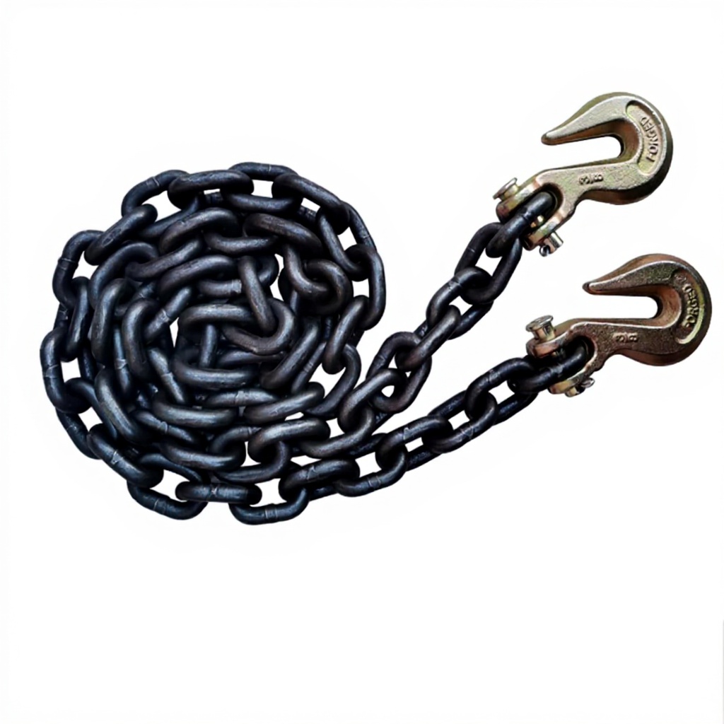 Questa catena di traino è realizzata in acciaio metallico di alta qualità, progettata per carichi di lavoro sicuri fino a 6T. I ganci a J forgiati e le maglie saldate in fabbrica assicurano resistenza e durata nel tempo, ideali per applicazioni industriali e di trasporto.